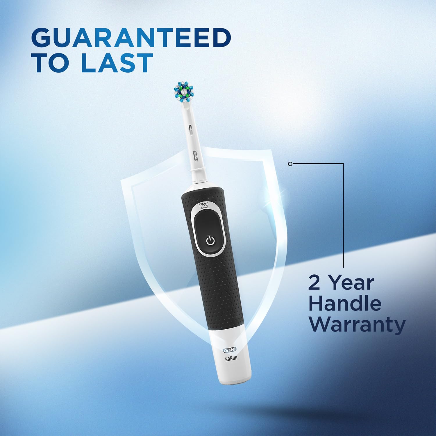 Oral-B Vitality Rechargeable Rotating Electric Toothbrush for Adults, 2 Brushing Modes (Daily & Sensitive), 2 Min Timer with Quadpacer, 2 Year Warranty by Oral B, IPX7 Water Resistant, Round Brush Head (Black)